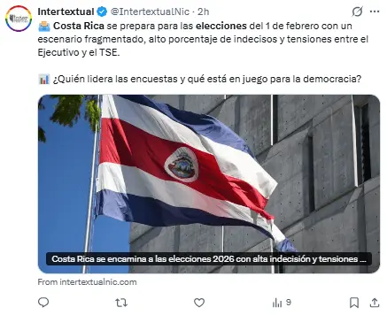 Regeneración, 29 de enero 2026– 3.7 millones de ciudadanos costarricenses están convocados a votar el 1 de febrero para elegir al nuevo presidente y a los 57 representantes del Congreso para el periodo 2026-2030. Las encuestas muestran una considerable ventaja para la candidata del partido en el poder, Laura Fernández.