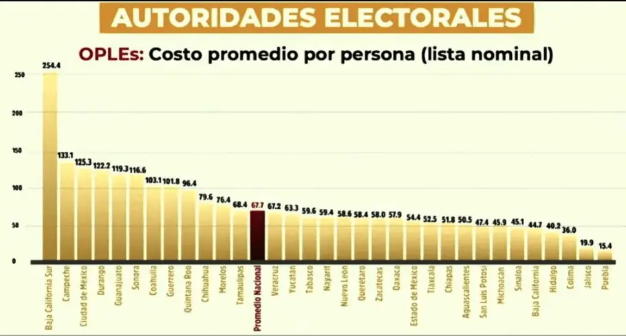 El «costo por voto» se calcula dividiendo el presupuesto total del organismo electoral estatal entre el número de ciudadanos en la lista nominal.