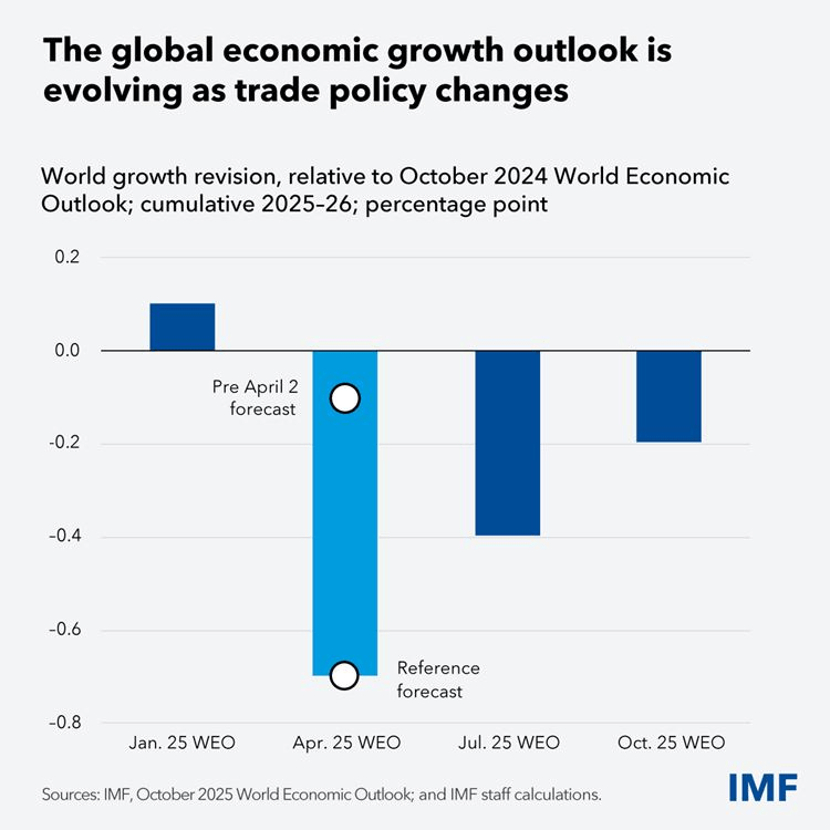 Como se indica anteriormente en junio el FMI había calculado un crecimiento de apenas 0.2% sin embargo ahora lo eleva 8 décimas y lo coloca en 1% para 2025.