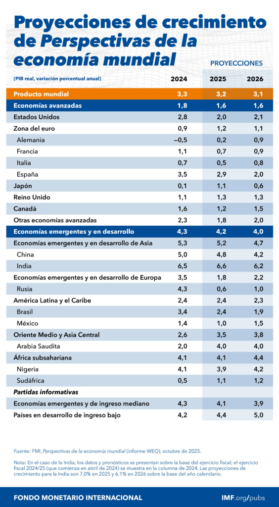 En lo que respecta a 2026, el FMI apunta a un avance de 1.5 por ciento en la economía mexicana, ligeramente por encima de 1.4 por ciento de sus estimaciones previas.