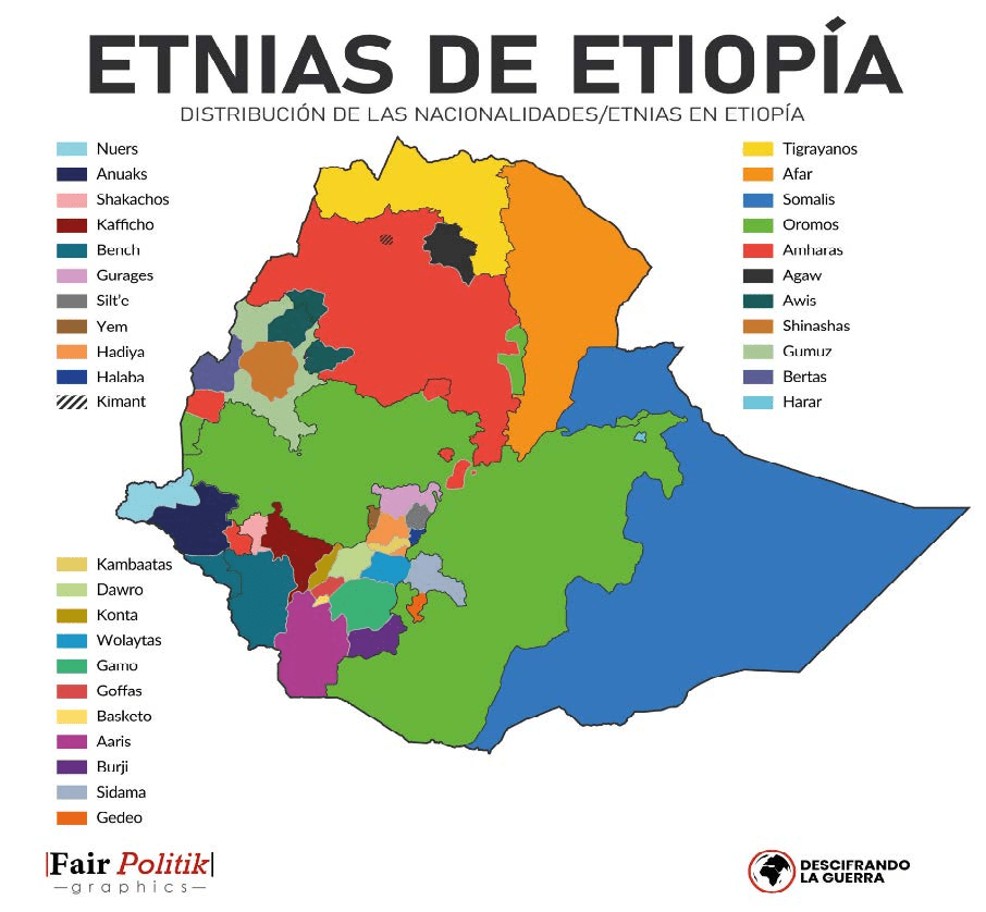 Asimismo se indica que el foco del conflicto militar en Etiopía se ha desplazado en gran medida hacia la vecina región de Amhara, donde milicias Fano combaten al ejército federal en 2026.