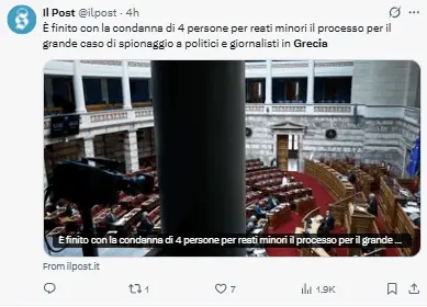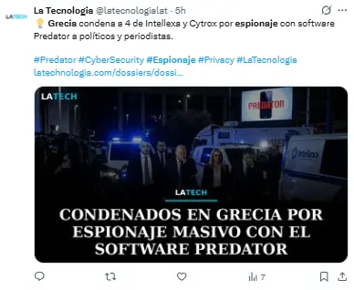 Regeneración, 26 de febrero 2026– Un tribunal en Atenas sentenció este jueves a cuatro individuos a ocho años de prisión cada uno por utilizar un software de espionaje electrónico contra empresarios, periodistas, militares y opositores políticos en Grecia, según reporta el diario ‘Efsyn’ en su edición digital.