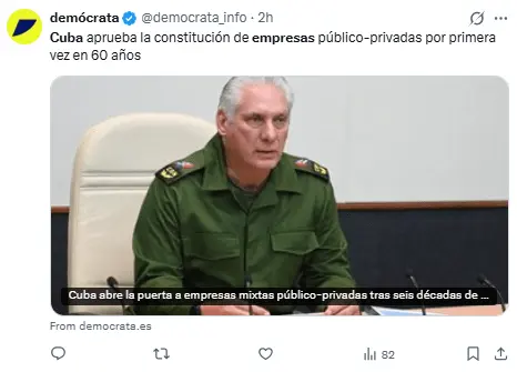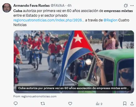 Regeneración, 4 de marzo 2026– El gobierno cubano, bajo la dirección de Miguel Díaz-Canel, ha dado luz verde a la creación de sociedades mixtas a través de un decreto. Estas sociedades podrán funcionar en casi todos los sectores legales, establecer su oferta y sus salarios, con excepción de los ámbitos de salud, educación y defensa.