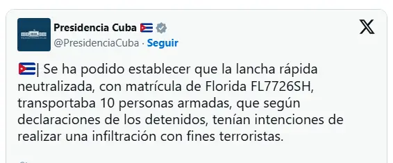 Sin embargo Washington ha reiterado que no apoya ni incentiva incursiones armadas contra la isla, aunque las autoridades cubanas señalan que estos grupos operan con «impunidad» desde Florida.