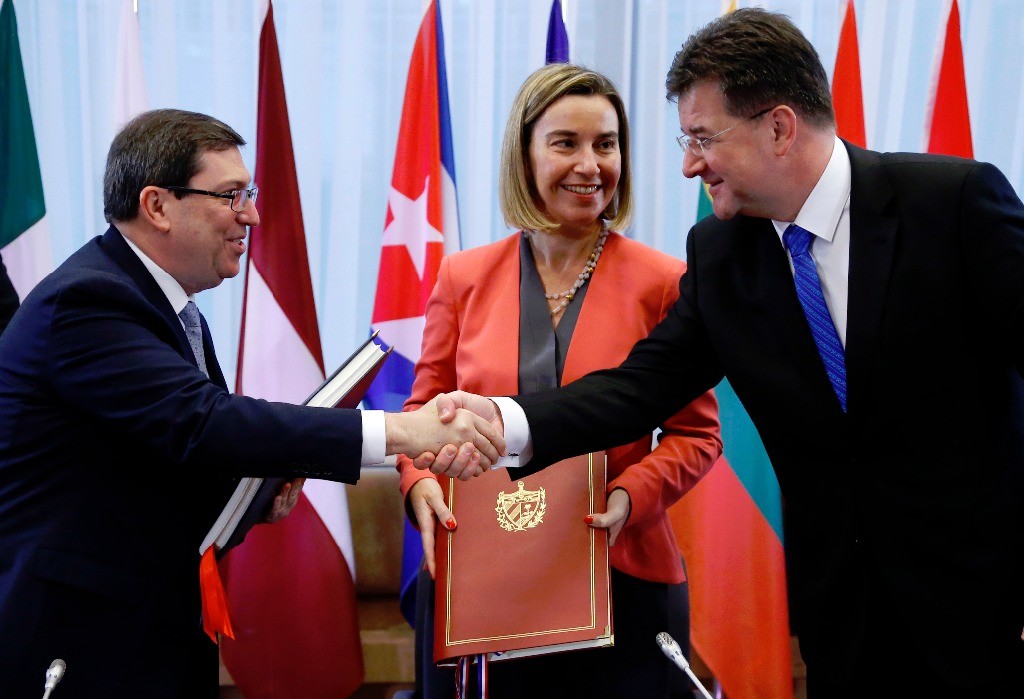 La ceremonia de firma se realizó el día de hoy en Bruselas, la jefa de la diplomacia europea, Federica Mogherini, calificó el acuerdo de «histórico» por crear por primera vez un marco oficial para las relaciones entre Cuba y la UE.