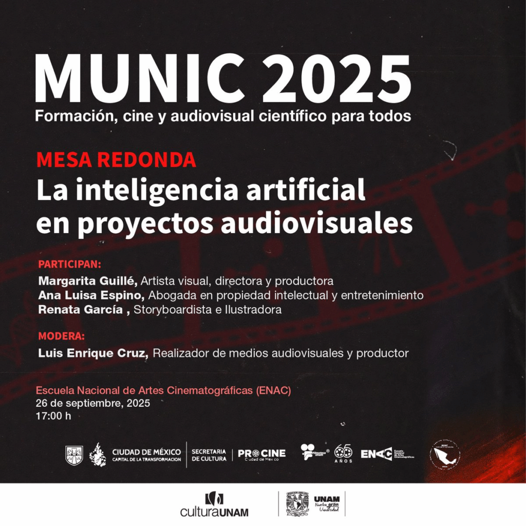 Finalmente se indica que MUNIC 2025 se realiza con al apoyo del IMCINE; PROCINE de Ciudad de México; Filmoteca UNAM; Instituto Sudcaliforniano de Cultura.