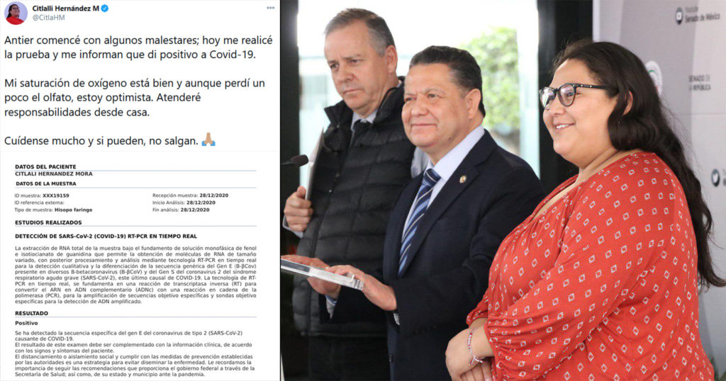 A través de un mensaje por redes sociales, la morenista dijo que había comenzado a sentir malestares desde el sábado 26. Posteriormente, su prueba del lunes 28 mostró positivo a Covid-19, la senadora con licencia compartió el documento a través de Twitter.