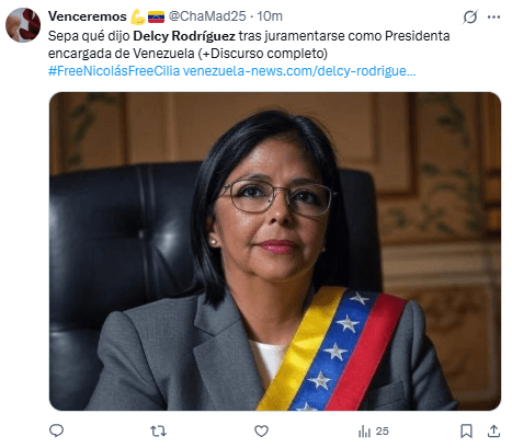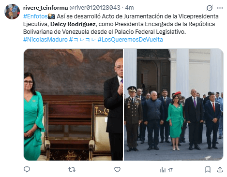 Con esta designación, Rodríguez se convierte en la primera mujer en la historia de Venezuela en liderar el Poder Ejecutivo.