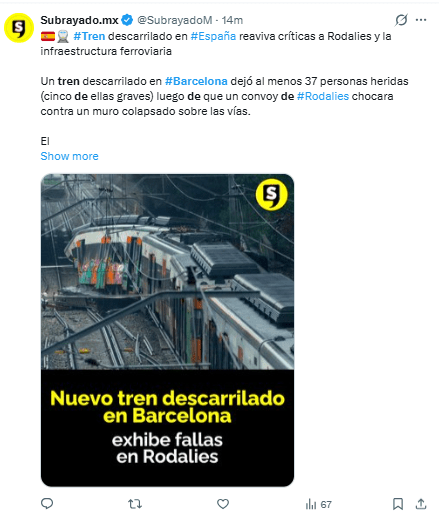 LEER MÁS:  Sindicatos de España piden "completa transparencia" en accidente de tren
