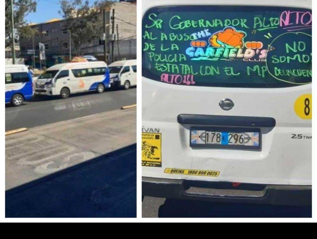 Con leyendas en los vidrios de sus unidades, los transportistas exigen al gobernador del Estado de México, Alfredo del Mazo.