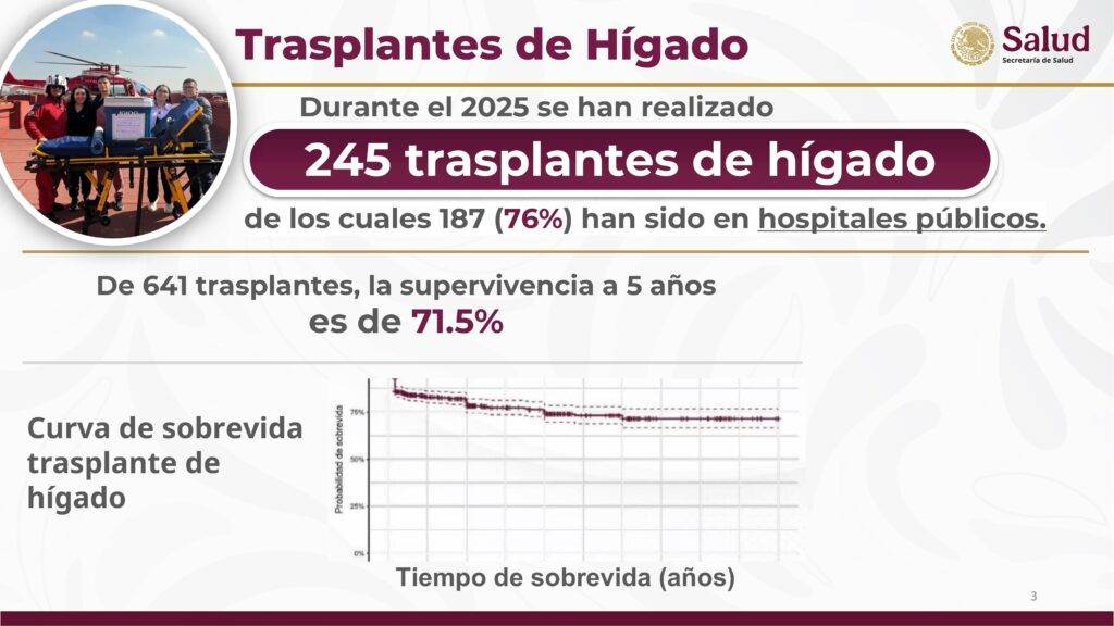 En relación a trasplantes de hígado, durante el 2025, se han realizado 245 trasplantes de hígado y de ellos el 76 por ciento, 187 [trasplantes], han ocurrido también en hospitales públicos.
