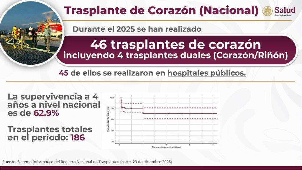 También hemos avanzado en lo que tiene que ver con trasplantes de corazón, dijo Salud.