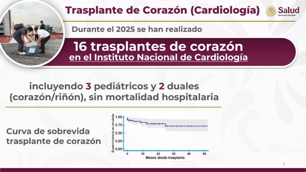 Sin ninguna mortalidad hospitalaria y con una sobrevida de 75 por ciento en trasplantes de corazón, o sea, hemos avanzado en poder tener los estándares internacionales para trasplantes de órganos.