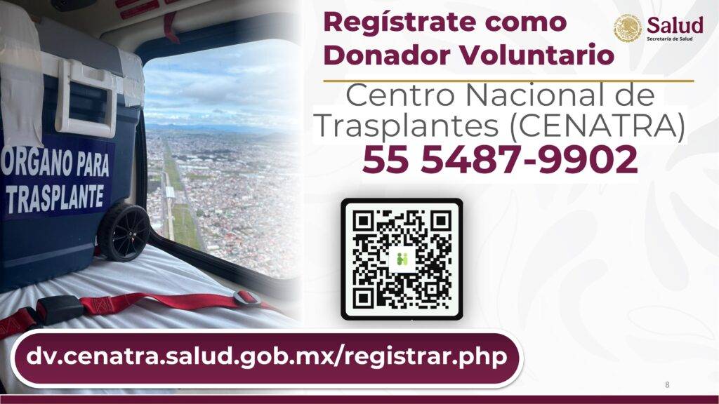 Para fomentar la campaña de órganos, tenemos posibilidades de trasplante en CDMX, Monterrey, Sonora, …en muchos sitios del país. Diseminarlos por todo el país a los especialistas.