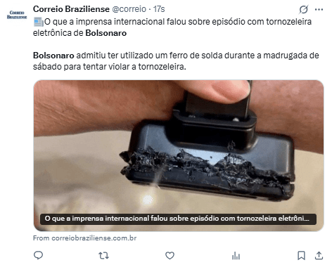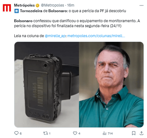 Bolsonaro dijo que “tuvo ‘una cierta paranoia’ debido a medicamentos (…) resolviendo, con un soldador, manipular la tobillera electrónica”, según un documento judicial obtenido por la AFP.