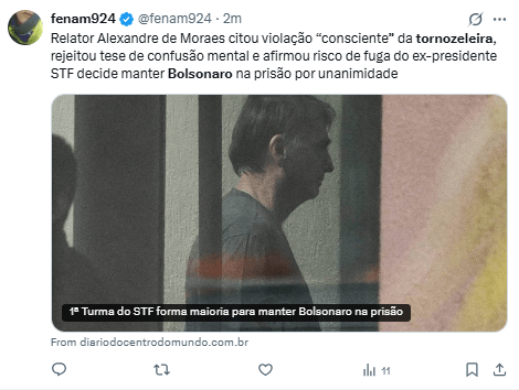 Regeneración, 24 de noviembre 2025– El expresidente brasileño Jair Bolsonaro aseguró este domingo que intentó quemar la tobillera que controla el cumplimiento de la prisión domiciliaria que enfrenta, en un momento de “paranoia”, según un documento difundido por la corte suprema.