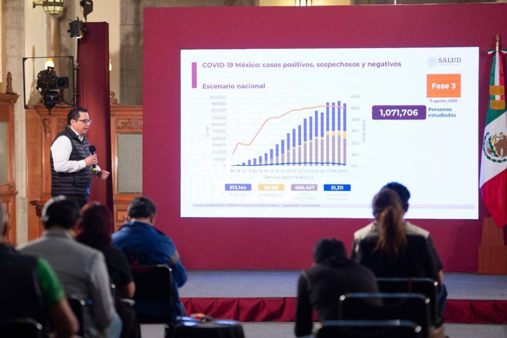 Regeneración, 8 de agosto del 2020.Durante su reporte diario sobre la situación de la pandemia en México, la Secretaría de Salud (SSa), informó que hasta este 7 de agosto del 2020 en el día 69 de la “nueva normalidad”, se tienen reportados 469 mil 407 casos positivos de la Covid-19.