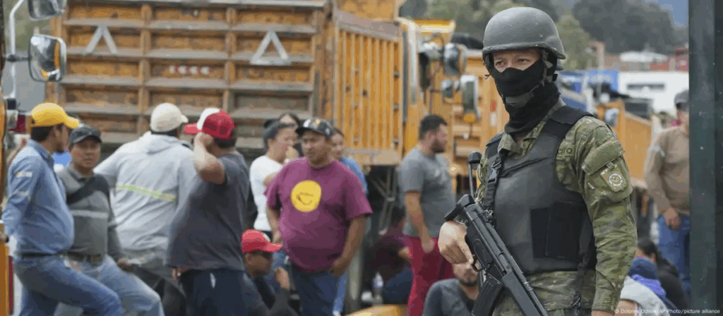Regeneración, 17 de septiembre 2025– La medida se aplicará por 60 días en siete provincias, donde Noboa además suspendió la libertad de reunión. El gobierno argumentó que los bloqueos provocaron «complicaciones en la cadena de abastecimiento de alimentos».