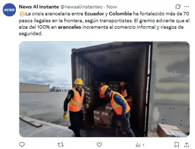 La guerra comercial entre Colombia y Ecuador dio inicio con la aplicación de aranceles del 30% por parte del presidente de Ecuador.