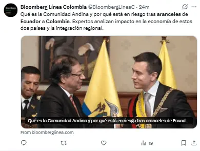 El conflicto comercial inició en febrero, cuando el Gobierno de Noboa implementó impuestos a productos colombianos para exigir más acciones en temas de seguridad.
