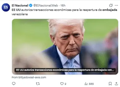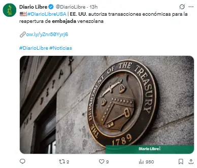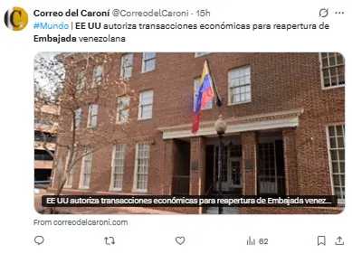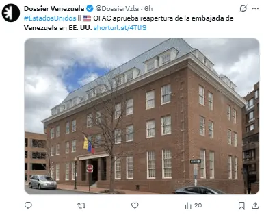 Entre otros objetivos, esta acción tiene el fin de facilitar la reapertura de la embajada venezolana en Washington.