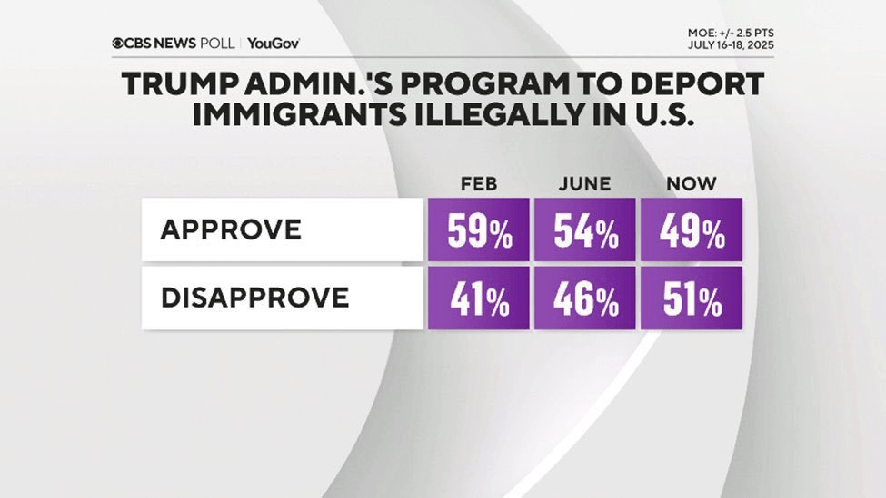 Los índices de aprobación del presidente rondan el 40 % por su gestión tanto de la inmigración en general como de las deportaciones en particular.