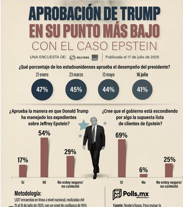 Cabe destacar que se trata de encuestas a seis meses del inicio de la segunda administración de Donald, presidente de EE.UU.