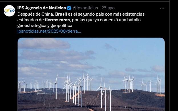 Regeneración, 26 de agosto de 2025. El ministro de Economía de Brasil Fernando Haddad dijo que la “interferencia” de Estados Unidos en la política interna de Brasil está directamente relacionada con el interés estratégico estadounidense en las llamadas “tierras raras” y otros minerales críticos que el país tiene.