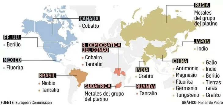Los minerales críticos incluyen el litio, el níquel, el cobalto y las tierras raras, todos fundamentales para la transición energética y para los sectores de alta tecnología, como la producción de baterías para vehículos eléctricos, turbinas eólicas, semiconductores y paneles solares.