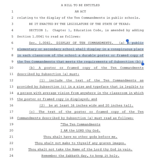 Y mismo que requiere que los mandamientos se muestren en todas las aulas de las escuelas públicas del estado, entrará en vigor el 1 de septiembre.
