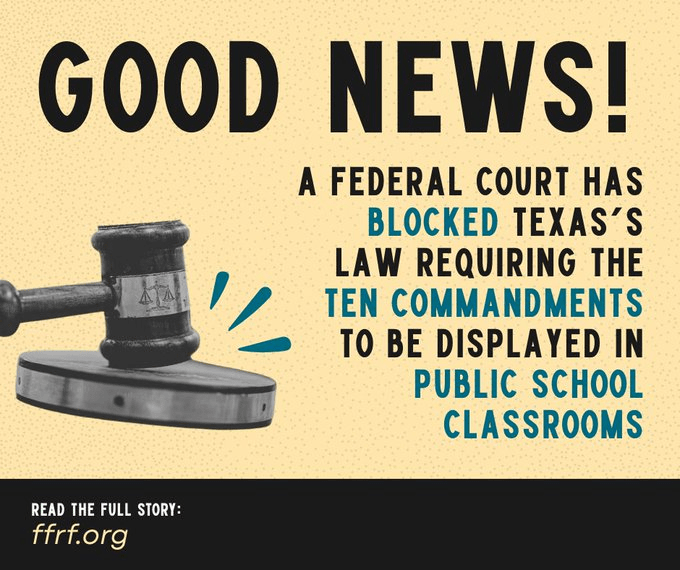 Por otra parte, Houston Public Media informó que varios grupos cristianos y conservadores han estado trabajando activamente para entregar carteles de los Diez Mandamientos.
