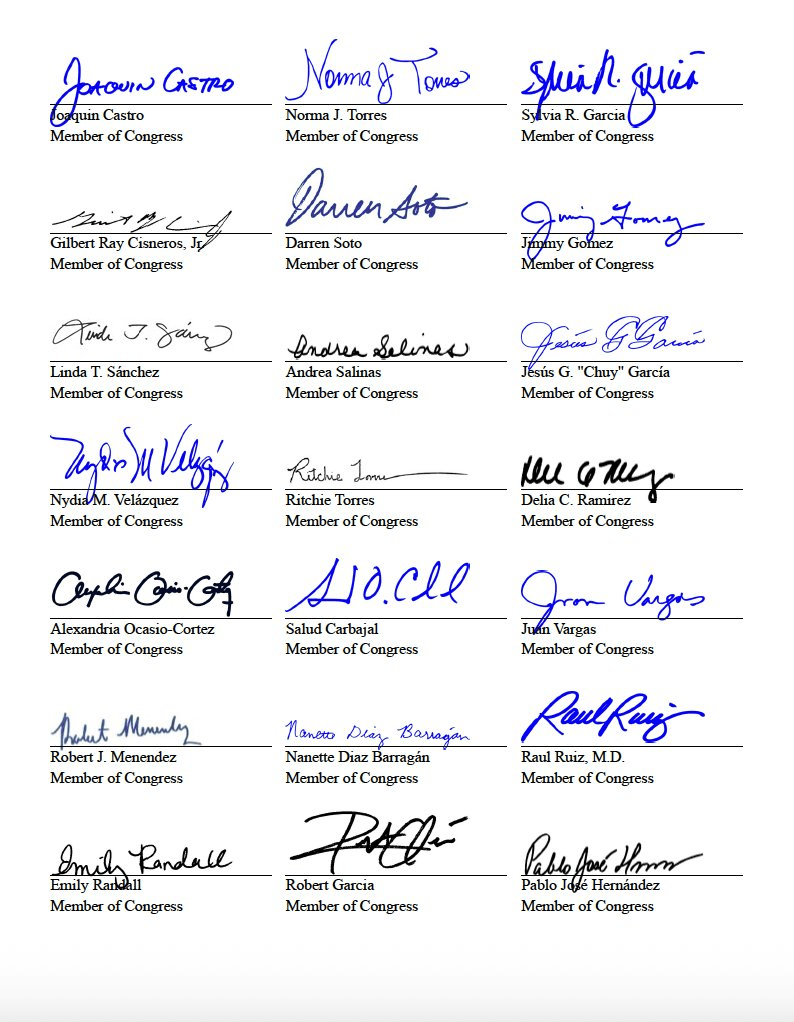 Lo anterior, se expresa en la carta que incluye miembros del “Caucus Congresional Hispano”, un grupo de legisladores creado en 1976 para abordar asuntos relevantes para la población hispana.
