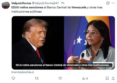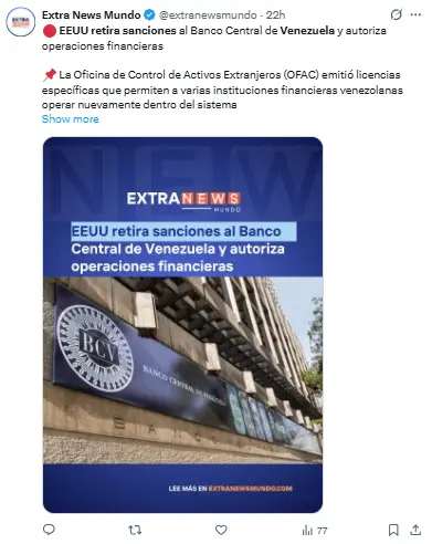 EE.UU retira sanciones al Banco Central de Venezuela y otros