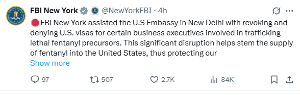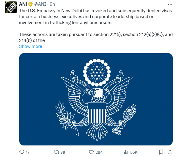 Regeneración, 18 de septiembre 2025– La administración Trump revocó y denegó visas a algunos ejecutivos de empresas indias por acusaciones de que están involucrados en el comercio de fentanilo, según la Embajada de Estados Unidos en India.