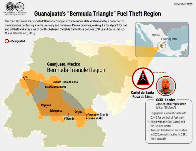EE.UU dice que Cártel S. Rosa de Lima opera en el llamado “Triángulo de la Bermudas”: León, Guanajuato, Irapuato, Salamanca, Celaya
