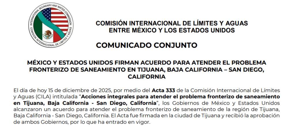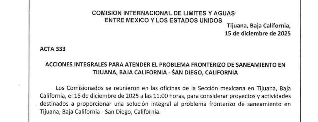 «El Acta 333 detalla acciones específicas para atender las preocupaciones binacionales referentes al saneamiento fronterizo de Tijuana-San Diego…»