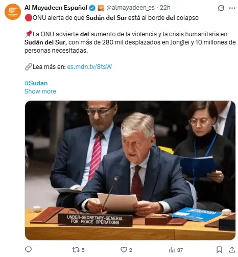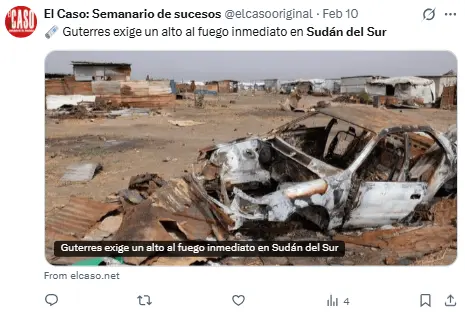 El pasado martes 10 de febrero, la ONU ya había advertido sobre la «grave escalada de la violencia» en Sudán del Sur.