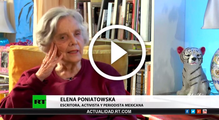 23 de junio del 2015.-En entrevista exclusiva a RT, la escritora, activista y periodista mexicana Elena Poniatowska explica por qué la Presidencia de México no tiene credibilidad, los políticos tratan al país como un rancho de su propiedad y la palabra «patria» no tiene el menor significado para ellos. Además, la premio Cervantes 2013 revela, entre otras cosas, cómo la realidad mexicana influye en su trabajo creador.