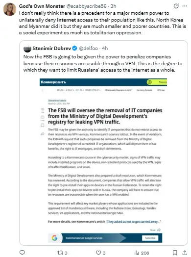 Las recientes políticas de control del FSB provocan críticas sobre el “campo de concentración digital” en que se convierte el país