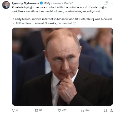 Cuando los reguladores rusos empezaron a reducir las velocidades de descarga y a bloquear las llamadas de voz en todo el país.