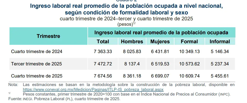 Cabe destacar que Inegi presenta la actualización de las cifras de Pobreza Laboral (PL) y los indicadores correspondientes al cuarto trimestre de 2025.