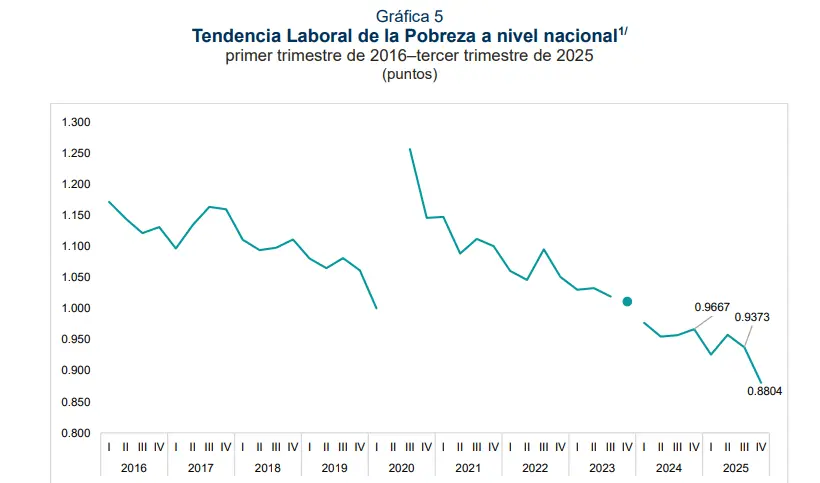 «Durante el cuarto trimestre de 2025 se registró una disminución la población en situación de pobreza laboral, tanto en la comparación trimestral como en la anual, a nivel nacional…