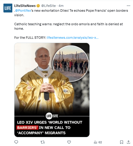 Regeneración, 9 de octubre 2025– En medio del debate migratorio en EE UU, el papa León XIV ha lanzado un mensaje contra la cultura de la exclusión. Pidió “construir puentes entre naciones, culturas y pueblos” y no “levantar muros que separan y dividen”.