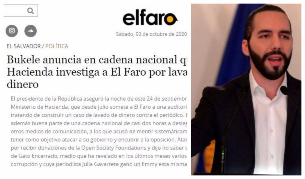 El presidente de El Salvador dijo durante una intervención en cadena nacional de radio y televisión que el Ministerio de Hacienda investiga a El Faro por “lavado de dinero”