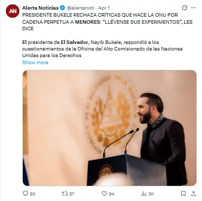 En el mismo mes, Bukele criticó en las redes sociales a quienes se oponen a la enmienda, acusándolos de ser demasiado permisivos con los crímenes violentos.