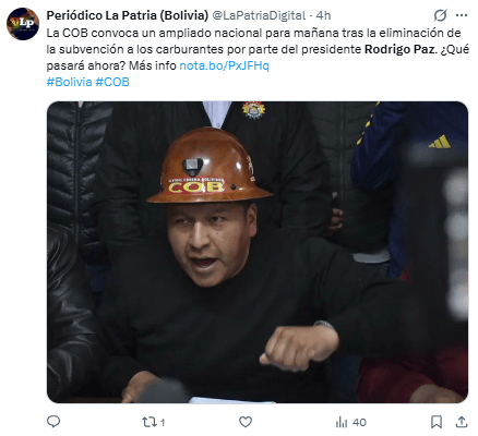 Decreto 5503 elimina subsidios a los combustibles en Bolivia, alzando precios generales. La COB realiza encuentro para definir medidas