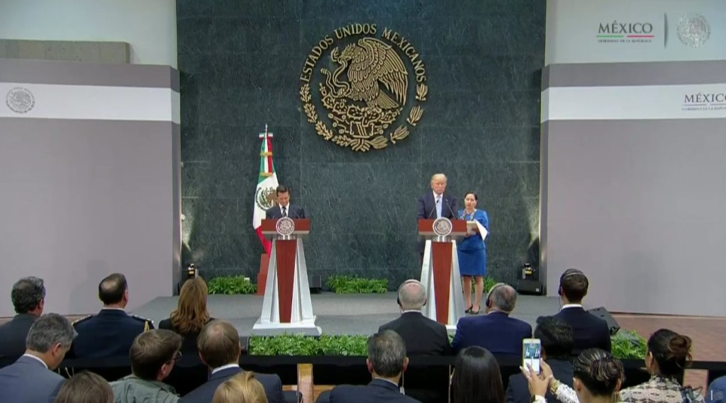Regeneración, 31 de agosto de 2016.- El candidato republicano, Donald Trump, reiteró frente al presidente Enrique Peña Nieto su interés de construir un muro en la frontera de México con Estados Unidos para detener la inmigración ilegal, aunque no se habló de quién lo pagará.
