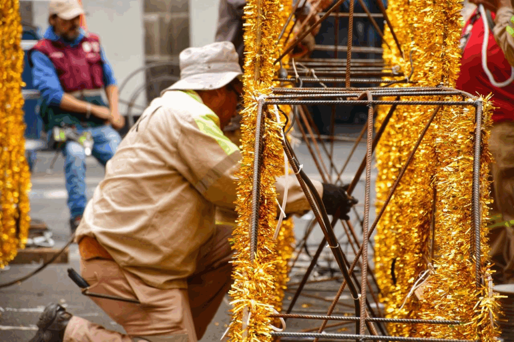 Mismo, hecho por 110 trabajadores de Alumbrado Público por su talento en el diseño y las instalaciones que llenarán de luz nuestra ciudad, durante todo este mes patrio.