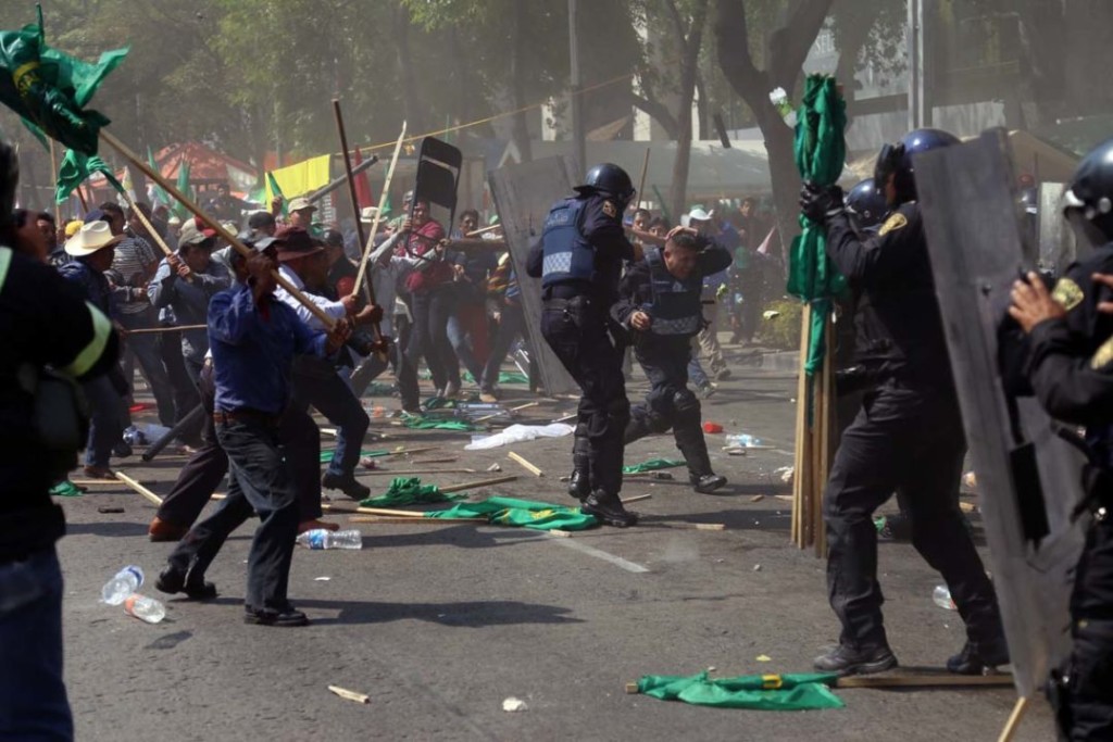 Los inconformes exigían mayores recursos a los programas sociales y para el campo en el Presupuesto 2017, según el reporte de la Secretaría de Seguridad Pública capitalina, la trifulca se registró a la altura de la Glorieta de Colón, cuando los uniformados impidieron a los manifestantes que trasladaran su plantón a los carriles centrales de Paseo de la Reforma.