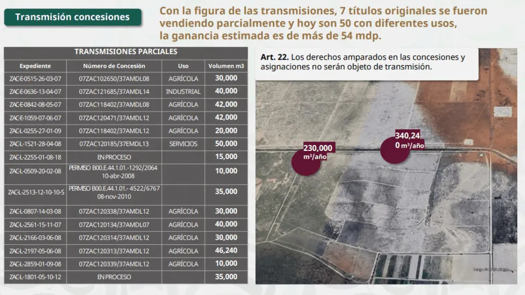 «…, el cambio a la Ley de Aguas, la nueva Ley de Aguas tuvo entre otras razones, quizá su principal, es acabar con los privilegios a la hora de cerrar la transmisión de derechos del agua».